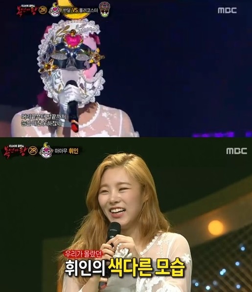 휘인은 또 "마마무는 비글돌이라고 불린다. 까불고 흥이 많아서 그렇게 불러주시더라"라며 "하지만 우리도 차분한 면이 있다"며 '복면가왕' 출연 의도를 넌지시 전했다.