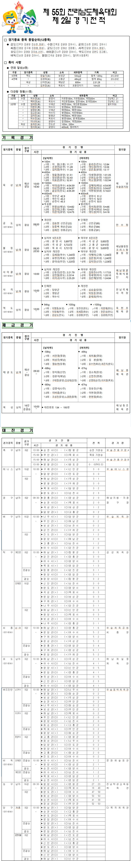 제55회 전라남도 체육대회 2일차 경기 결과가 발표됐다.
