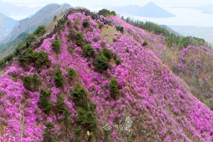 | ▲ 고려산 진달래 축제를 찾은 관광객들이 군락지를 오르고 있다. | ||