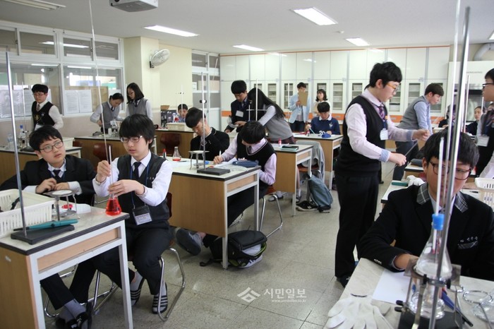 최근 충남 아산교육지원청은 온양동신초등학교와 온양용화중학교에서 '제24회 충남과학탐구실험 아산시 예선대회'를 개최했다. 사진은 대회에 참석한 학생들이 과학실험을 하는 모습.(사진제공=아산교육지원청)