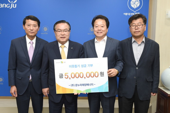 (주)온누리태양에너지, 양주시에 이웃돕기 성금 기부