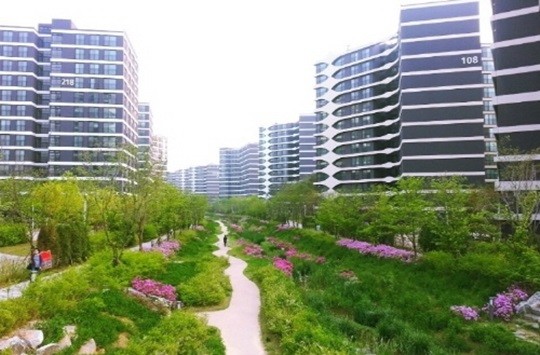 단지 내로 이어지는 약 6만㎡의 근린공원이 형성돼 있어 다양한 이용계층을 고려해 생태교육장과 피크닉 시설을 갖춘 곳이다. 또 1만5000㎡의 넓은 잔디광장과 프로그램분수 등 다양한 조경시설과 워터파크·헬스파크 등으로 구성돼 있다.