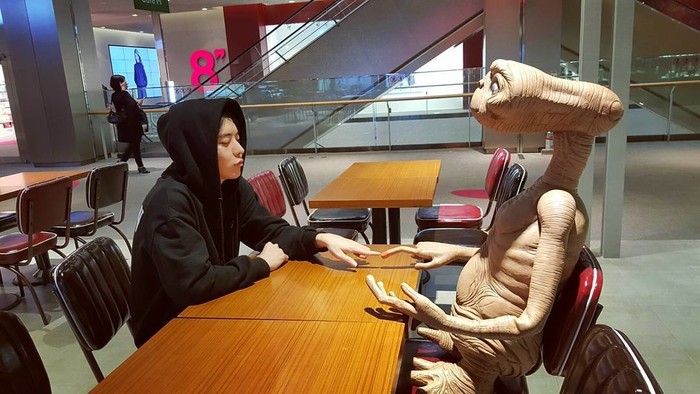 공개된 사진 속 박태준은 캐릭터 E.T와 진지한 표정으로 손가락을 맞대고 있다. 그는 교신을 하는 듯한 모습으로 이색적인 매력을 자아내 팬들의 마음을 사로잡았다.