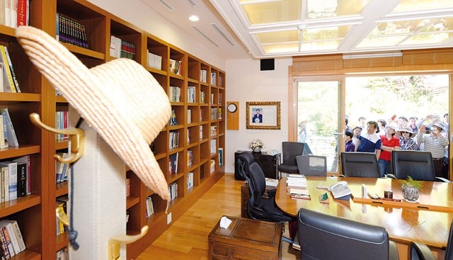 1일 일반에 첫 공개된 경남 김해시 진영읍 본산리 봉하마을에 있는 고(故) 노무현 전 대통령 사저 내 서재를 관광객들이 둘러보고 있다.