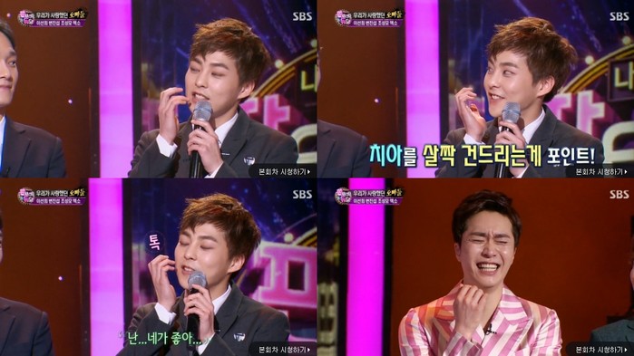 시우민은 "조성모 선배님은 포인트가 있다.치아를 살짝 건드려줘야 한다"라고 말했다.