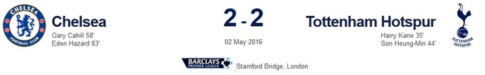 마우리시오 포체티노 감독이 이끄는 토트넘은 3일 오전 4시(한국시간) 스탬포드 브리지 스타디움에서 열린 첼시와의 2015-2016 잉글리시 프리미어리그 36라운드에서 치열한 공방전끝에 2-2로 승부를 가리지 못했다.