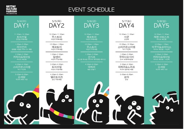 이번 행사에서는 ▲ 작가와 함께 나만의 아트토이 만들기 ▲어린이 대상 무료체험 프로그램 ▲작가 사인회 ▲라이브 페인팅 퍼포먼스 ▲세미나 등의 프로그램이 진행된다.