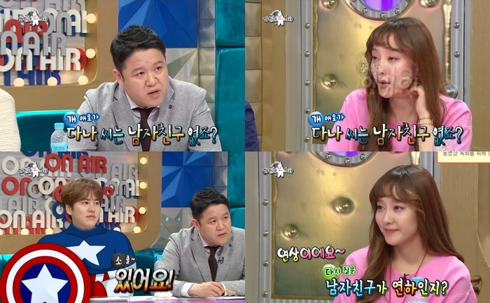 이를 본 김국진은 "남자친구는 다나와 동갑이냐"고 물었고,다나는 "사실 국진이 오빠는 한번 본적이 있다,연상이다"라고 말하며 남자친구에 대해 궁금증을 자아냈다.