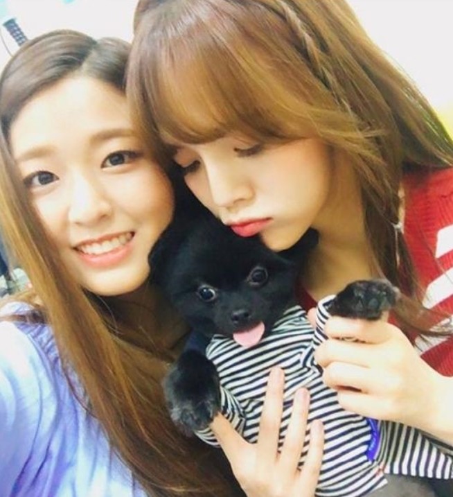 사진속 설현은 지민과 강아지와 함께 환하게 웃고 있다.