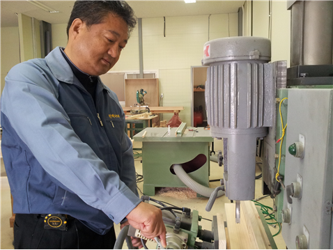 | ▲ 가구제작에 몰두하고 있는 장성편백가구 문일태 기술이사(사진) | ||