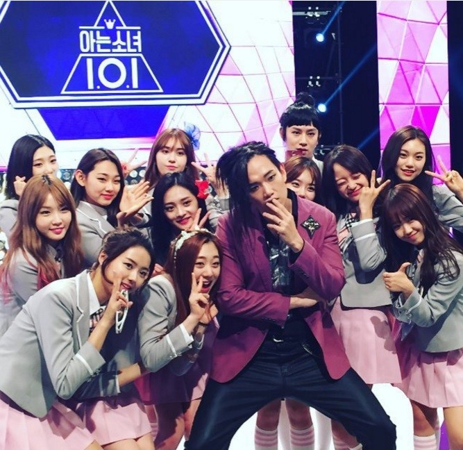 사진 속 김희철, 아이오아이, 장성규 아나운서는 개성 넘치는 포즈를 취하고 있다. 특히 김희철은 자연스러운 모습으로 아이오아이 멤버들 틈에 섞여 있어 웃음을 자아낸다.