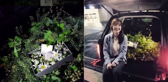 영상 속 구혜선은 자동차 트렁크 안에 엄청난 양의 냉이꽃 옆에 앉아 미소를 짓고 있으며 안재현은 연신 "예쁘다"는 말을해 알콩달콩한 모습을 자아냈다.
