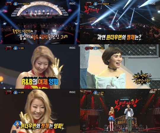 양파는 이날 '복면가왕'에서 신비한 원더우먼으로 출연, 뛰어난 노래 실력을 뽐냈다.