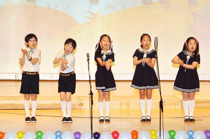 최근 금천구는 오후 2시 금나래아트홀 공연장에서 '제6회 나도스타 금천어린이 동요부르기 대회'를 개최했다. 사진은 대회에 참석한 어린이들이 동요를 부르는 모습.(사진제공=금천구청)