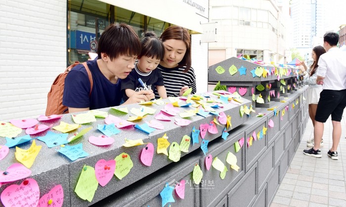 지난 8일 오후 2016대구약령시한방축제를 찾은 한 가족이 축제장에 마련된 대구읍성 모형에 가족의 소망이 담긴 소원지를 부착하고 있다.(사진제공=연합뉴스)