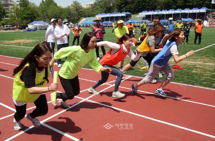 지난 7일 서울 강남구는 수도전기공업고등학교에서 '제8회 강남구민체육대회'를 개최했다. 사진은 계주 경기에 참석한 구민들이 달리기를 하는 모습.(사진제공=강남구청)
