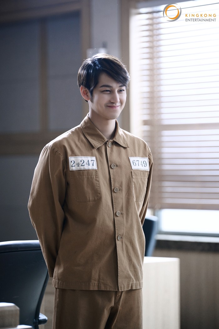 그러나 다른 컷에서 김범은 '피고인' 이라고 적혀진 팻말을 손가락으로 가리키며, 흐뭇한 미소를 짓는등 새로운 모습으로 시선을 강탈했다.