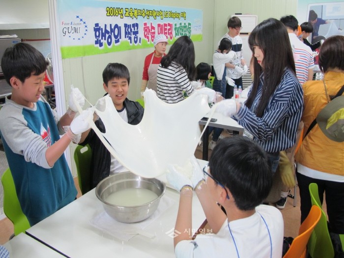 최근 경상북도구미교육지원청은 옥성 풀마실과 자연휴양림에서 학습 멘토링 ‘환상의 짝꿍’ 프로그램에 참여하는 멘티 및 멘토 80명을 대상으로 체험 활동을 실시했다. 사진은 참가 학생들이 치즈제작 체험을 하는 모습.(사진제공=구미교육지원청)