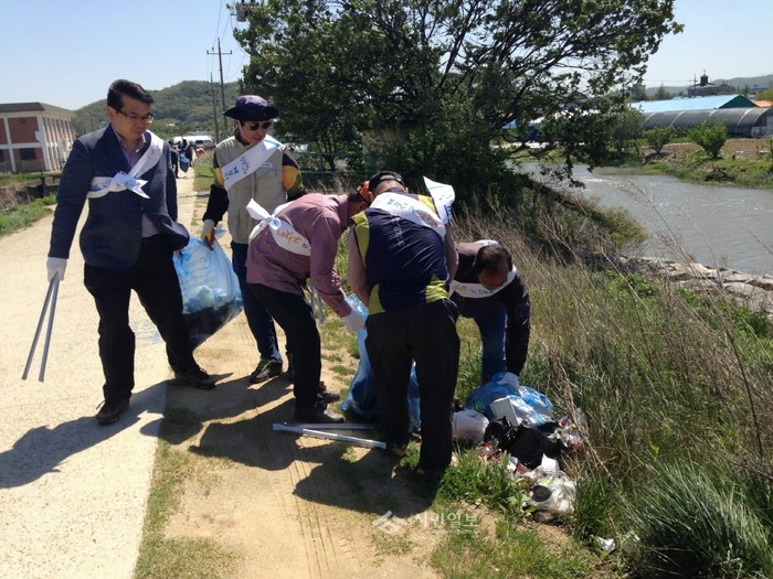 최근 충남 아산시 영인면에서는 이장협의회, 새마을지도자회 및 직원 등 50여명이 참석한 가운데 아산호 주변 환경정화활동을 실시했다. 사진은 행사에 참석한 관계자들이 생활쓰레기를 수거하는 모습.(사진제공=아산시청)