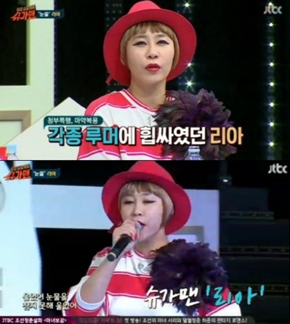 리아는 10일 방송된 '슈가맨'에서 가수 유희열 팀으로 출연해 오랜만에 반가운 얼굴을 드러냈다. 리아는 특히 히트곡인 '눈물'을 열창하며 폭발적인 가창력으로 무대를 압도했다.