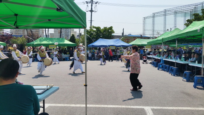 경기 동두천시 상패동 주민센터는 지난 11일 주민센터 주차장에서 '제44회 어버이날 기념 행사'를 개최했다. 사진은 식전행사로 이담풍물단의 풍물놀이가 진행 중인 모습.(사진제공=동두천시청)