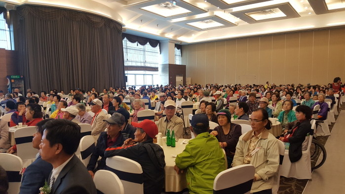 지난 11일 경기 수원시 팔달구 우만1동은 수원노블레스웨딩컨벤션에서 1500명의 노인들을 초대해 경로잔치를 개최했다. 사진은 행사에 참석한 노인들이 공연을 관람하는 모습.(사진제공=팔달구청)