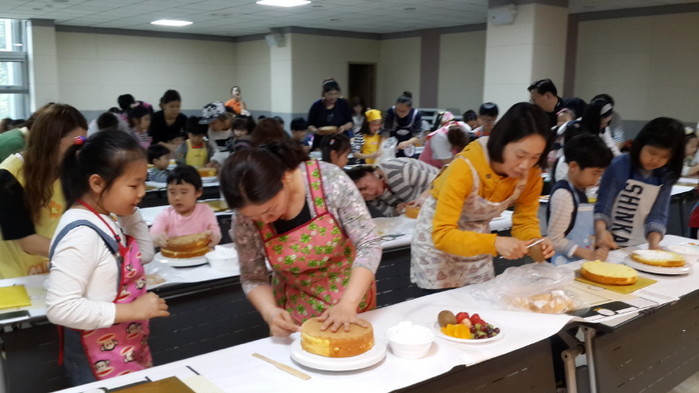 지난 10일 경기 화성시 봉담장애아동재활센터는 봉담주민건강지원센터 3층 컨벤션홀에서 가정의 달을 맞아 가족과 함께하는 ‘알콩달콤 가족 케이크 만들기’ 체험행사를 개최했다. 사진은 행사 참가자들이 케이크를 만드는 모습.(사진제공=화성시청)
