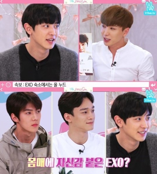 ‘The 보이는 SM’은 11일 V앱을 통해 첫 방송됐다. 이날 방송에는 엑소 찬열, 첸, 세훈이 출연했다.