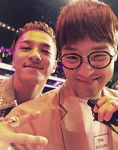 그는 최근 자신의 SNS를 통해 "뱅뱅뱅 빵야빵야빵야 다꼼짝마랑#빅뱅#태양#멋잇어#형#멋잇어요"라는 글과 함께 사진 한 장을 게재했다. 공개된 사진 속 이들은 카메라를 응시하며 미소짓고 있다.
