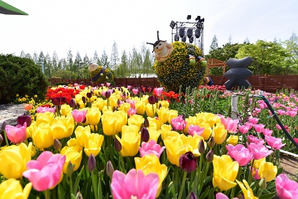 연일 관람객들의 발길이 끊이지 않았던 꽃박람회는 폐막을 하루 앞 둔 가운데 화려하게 만개한 튤립과 익살맞은 꿀벌 조형물이 볼거리를 선사하고 있다.