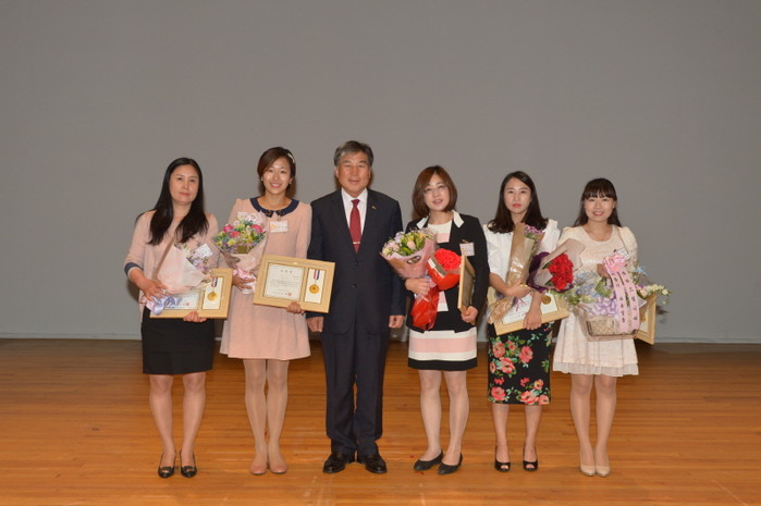 지난 13일 경기 동두천시어린이집연합회는 시민회관 대공연장에서 지역내 어린이집 원장 및 보육교사 300여명이 참석한 가운데 '2016 보육교사 스승의 날 행사'를 개최했다. 사진은 오세창 시장(왼쪽에서 세 번째)과 보육교사들이 기념촬영을 하는 모습.(사진제공=동두천시청)