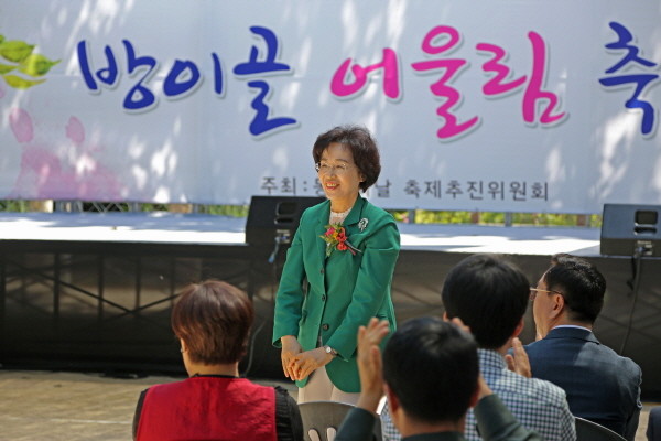최근 방이근린공원에서 열린 “제4회 방이2동 동민의 날”을 기념하는 “방이골 어울림 축제”에 참석한 박춘희 송파구청장이 인사말을 하고 있다.