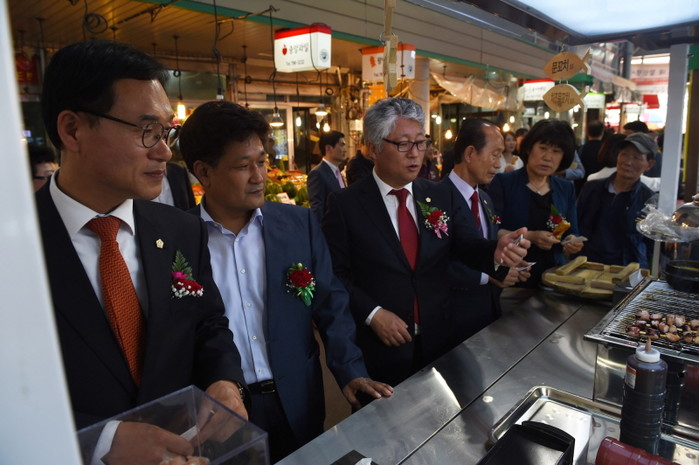 최근 경기 하남시는 이종수 하남시장 권한대행, 이현재 국회의원 및 시의원, 신장시장 상인회 100여명이 참석한 가운데 신장전통시장 골목형시장 개막식을 개최했다. 사진은 이종수 시장대행(왼쪽에서 두번째)이 시장을 둘러보는 모습.(사진제공=하남시청)