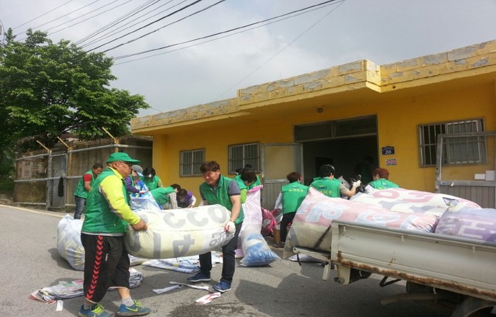 최근 이천시 호법면 새마을지도자협의회는 호법면에서 자원 재활용과 헌옷을 팔아 어려운 이웃을 돕자는 취지로 헌옷 모으기 행사를 펼쳐 헌옷 2톤을 수거했다. 사진은 회원들이 수거한 헌옷을 옮기고 있는 모습.(사진제공=이천시청)