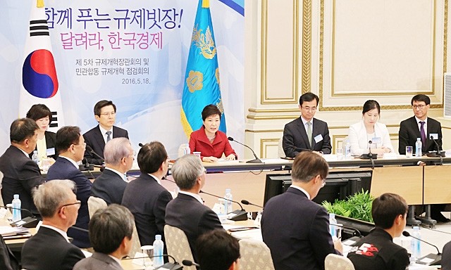 박근혜 대통령이 18일 오후 청와대에서 열린 제5차 규제개혁 장관회의에서 불합리한 규제혁파를 강조하고 있다.