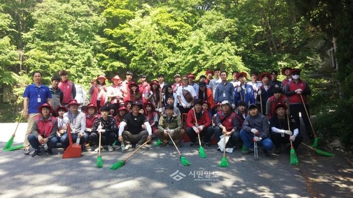 지난 18일 LG이노텍 구미사업장 노동조합 소속 직원 100여명은 경북 구미시 해평면 도리사 진입로 및 주변 환경정화 활동을 실시했다. 사진은 행사에 참석한 관계자들이 기념촬영을 하는 모습.(사진제공=구미시청)