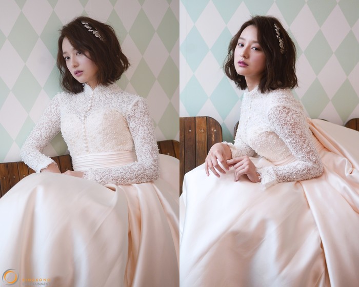공개된 사진 속 김지원은 인형같은 외모에 자연스러운 메이크업을 한 채, 웨딩드레스를 입었다. 이러한 모습은 마치 동화 속 공주를 연상케해 남심을 사로잡기에 충분한 것.