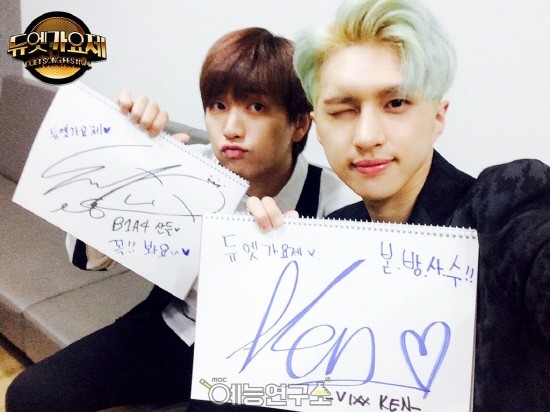 사진 속에서 산들과 켄은 각자의 싸인을 들고 훈훈한 외모를 한껏 뽐내 많은 팬들의 시선을 모았다.
