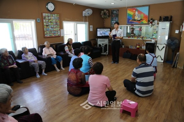 지난 19일 경기 여주소방서는 여주시 금사면에 위치한 희망의 집을 방문해 화재 등 재난발생에 취약한 요양시설 자율안전관리 안전컨설팅을 실시했다. 사진은 소방서 관계자가 노인들에게 화재예방 등 재난안전교육을 하는 모습.(사진제공=여주소방서)