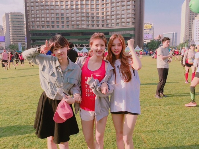 지난 22일 오전 디애나는 ‘2016 서울 나이키 우먼스 하프마라톤’에 참여해 서울 중구 서울광장부터 송파구 올림픽 공원까지 총 21km 코스를 힘차게 달렸다. 본격적인 참가 전 멤버 나현과 막내 뉴썬(New Sun)이 응원에 나서 힘을 더했다. 특히 뉴썬은 자신의 트위터에 디애나를 향한 응원의 메시지와 함께 깜짝 인증샷을 남기는 것도 잊지 않았다.