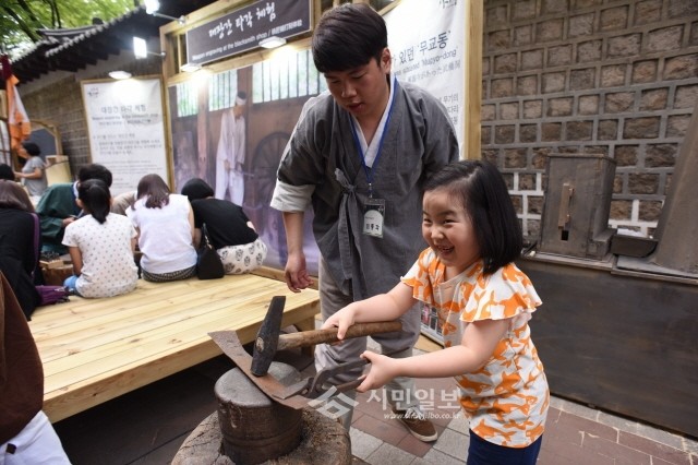 | ▲ 지난해 열린 '정동야행'을 찾은 어린이가 '대장간 체험'을 하며 즐거워하고 있다. | ||