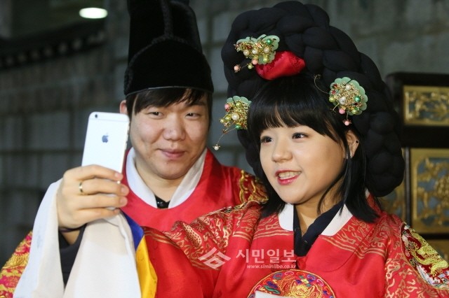 | ▲ 지난해 열린 '정동야행'을 찾은 시민들이 '왕과 왕비복을 입어보는 체험'을 하며 포토존에서 사진을 찍고 있다. | ||
