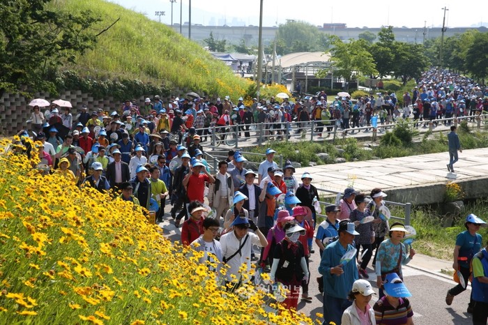 최근 서울 성동구는 살곶이체육공원에서 4000여명의 구민이 참석한 가운데 걷기운동의 확산과 이웃간 화합과 친목을 도모하기 위한 '2016 성동구민 한마음 걷기대회'를 개최했다. 사진은 행사 참가자들이 공원을 걷고 있는 모습.(사진제공=성동구청)