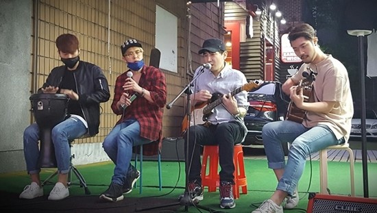 지스트리트는 지난 24일 서울 강남구 가로수길에서 버스킹 공연을 개최했다.