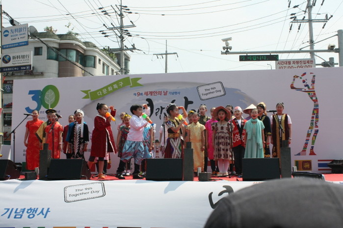 최근 경기 안산시는 올해로 아홉 번째 맞는 세계인의 날 기념행사를 내·외국인 주민 2000여명과 내빈들이 함께 한 가운데 다문화지원본부 앞 야외무대에서 성황리에 개최했다. 사진은 지구촌 합창단 어린이들이 공연하는 모습.(사진제공=안산시청)