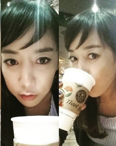 공개된 사진 속 정정아는 카페에 앉아 입술에 거품을 묻히며 음료를 마시고 있어 보는이들의 시선을 끌고있다.