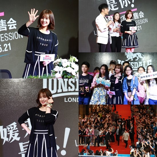 김지원은 21일 중국 베이징에서 스포츠 캐주얼 브랜드 `론즈데일'이 주최한 팬 사인회에 참석했다.