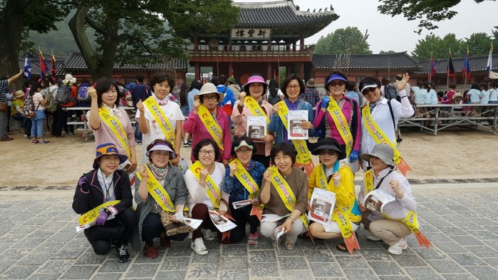 경기 수원시 팔달구 우만2동 새마을부녀회는 지난 25일 ‘2016년 수원화성 방문의 해’를 맞이해 화성행궁 및 행궁동 벽화마을 체험했다. 사진은 행사에 참석한 관계자들이 기념촬영을 하는 모습.(사진제공=팔달구청)