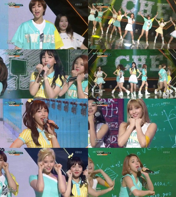 트와이스는 이날 '치얼업(CHEER UP)'을 열창하며 파워풀한 안무를 해맑은 미소로 여유있게 소화했다. 그들은 한층 여유로워진 모습으로 상큼발랄한 애교를 선사하며 무대를 활기차게 만들었다.