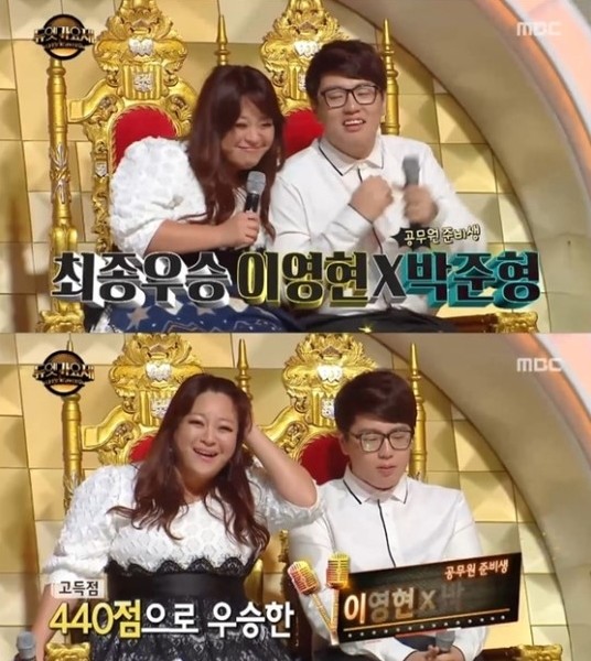 이날 이영현은 박준형과 함께 최재훈의 '비의 랩소디'를 선곡해 불렀으며 아름다운 화음과 가창력으로 최종 440을 기록해 산들 팀을 꺾고 1위를 차지했다.